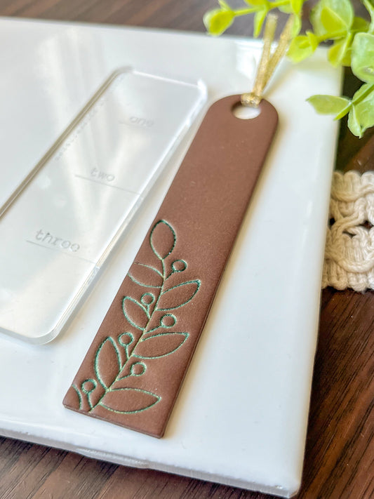 Brown and green embossed bookmark