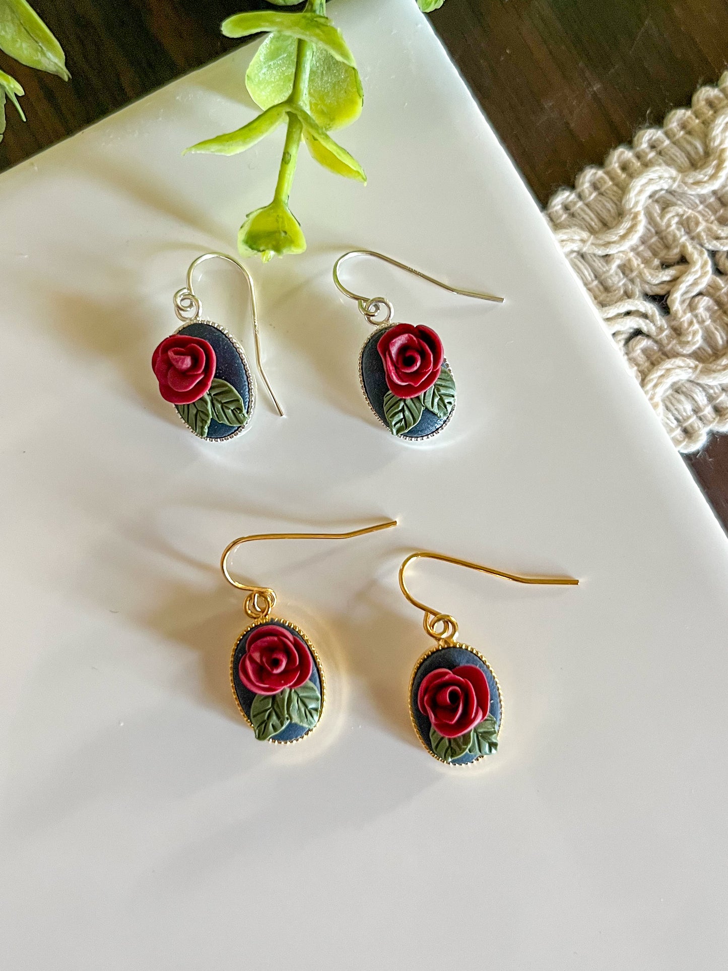 This romantic style has a timeless charm with modern color. They are about 15mm long and are perfect for someone who wants a small floral accent perfect for any outfit. Coming in both 18k gold plated and sterling silver options, there is something for everyone.