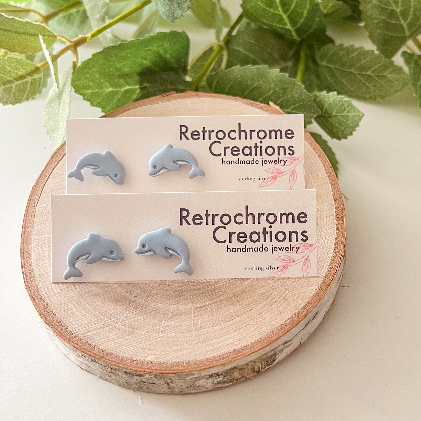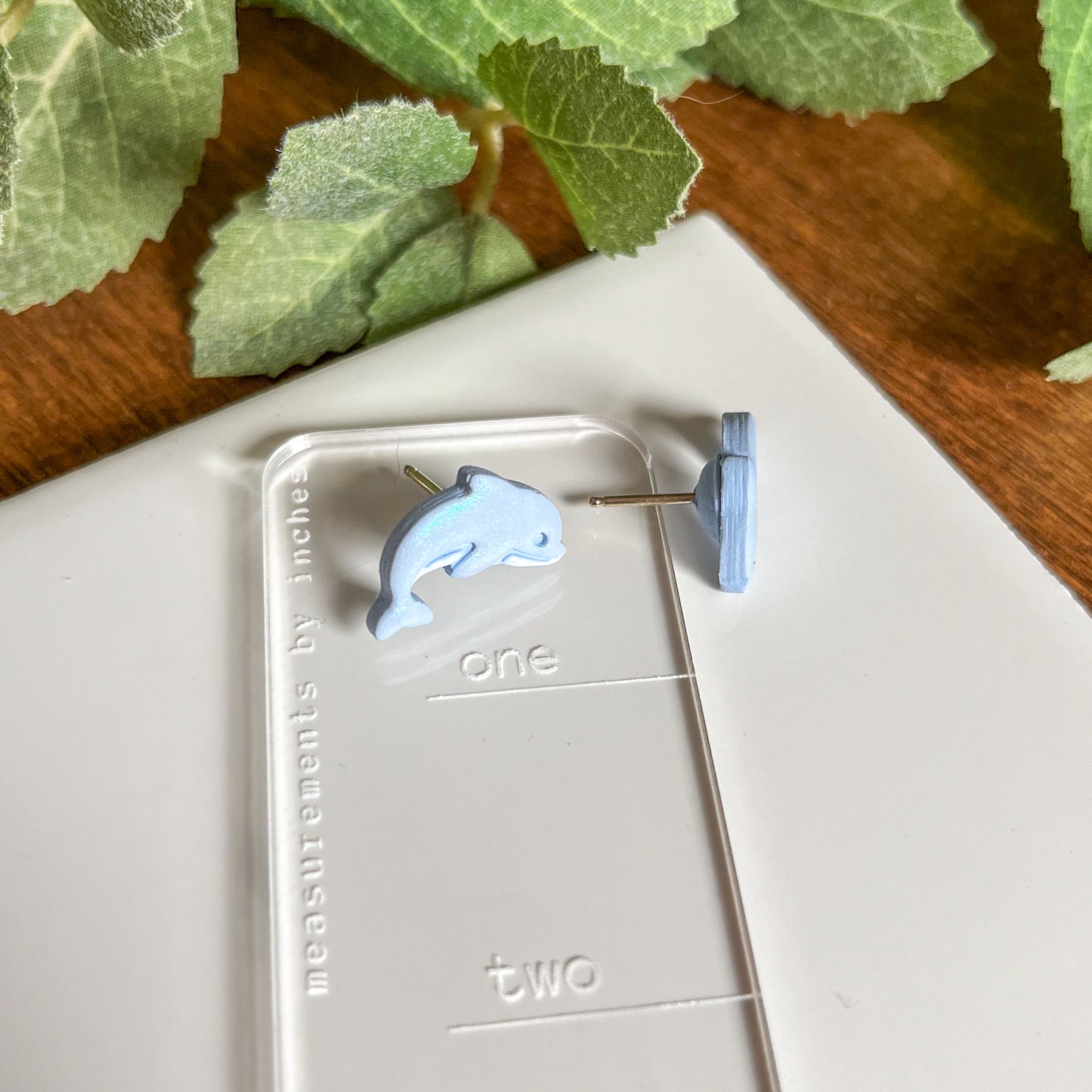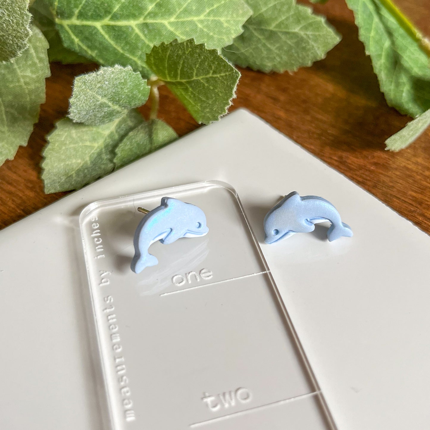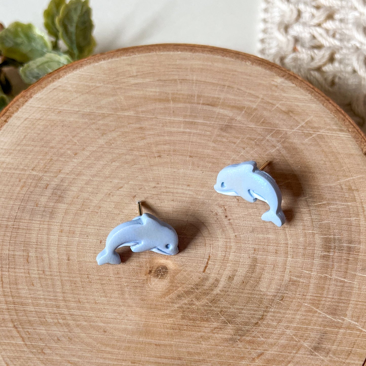 These stunning dolphin earrings feature an iridescent blue shimmer on the delicate dolphin studs. They are a perfect mix between a classic summer style and a kitsch piece of jewelry.